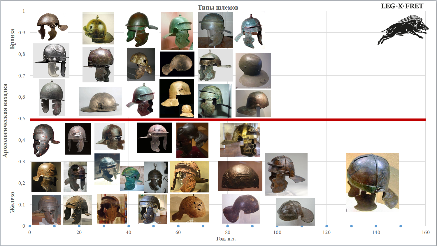 Большинство шлемов подойдут и легионерам, и ауксилариям. Главное - правильно выбрать реконструируемый период. Так как есть сведения, что шлемы могли переходить к владельцам по нескольку раз, то срок их использования мог превышать 50 лет! Это значит, что на начало второго века могут быть использованы более ранние шлема, но не наоборот - поздние шлема никак не могут быть использованы на более ранние периоды. Для реконструкции существует два подхода к производству шлемов - аутентичный цельнотянутый и стилизованный сварной. Последний обойдется дешевле, и рекомендуется начинать с него и брать наиболее простой и дешевый тип - к примеру имперский италийский J1. В дальнейшем можно стремиться к более интересным и цельнотянутым вариантам.